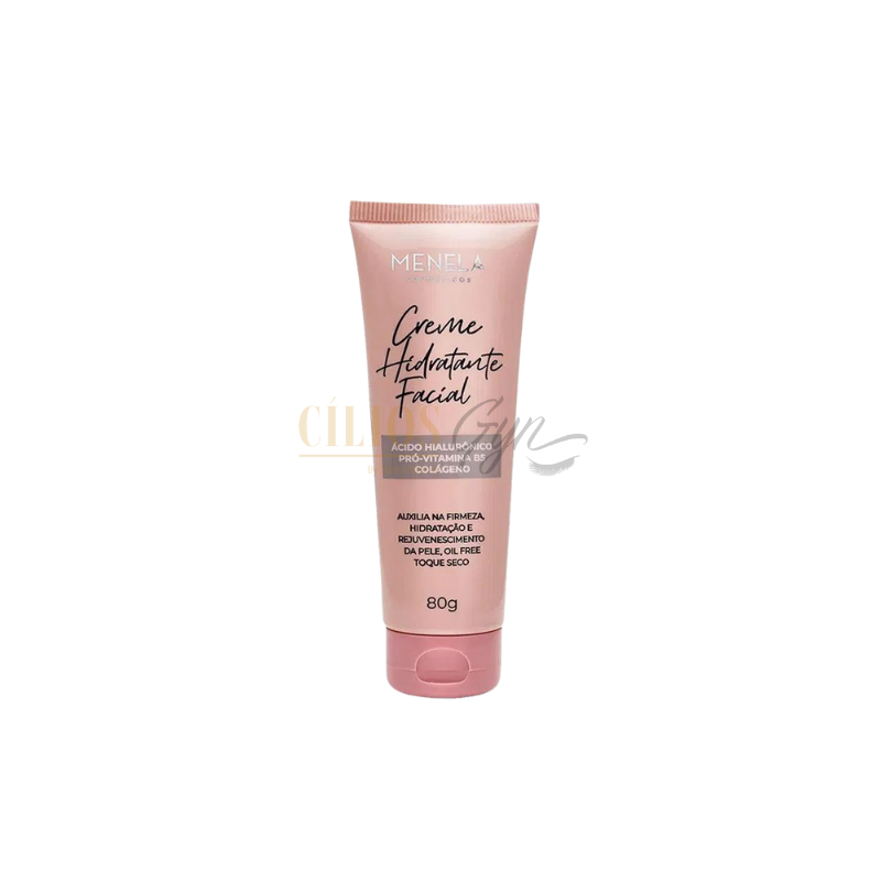 O Creme Hidratante Facial Menela possui toque seco, textura leve e contém em sua fórmula ácido hialurônico, Pró-Vitamina B5 e Colágeno que auxilia na firmeza, hidratação e rejuvenescimento da pele.MODO DE USAR:Aplique o Creme Hidratante Facial Menela sobre toda a pele do rosto e pescoço massageando suavemente com movimentos circulares até a total absorção do produto.